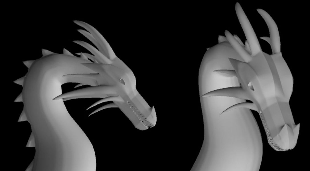 Model was created in Autodesk Maya. The model was initially created to add LED lighting to the inside of the print. So the design of the dragon is completely hollow on the inside to accommodate space for lighting. The hexagon fill on the 3D print adds a scale texture giving this piece its name.