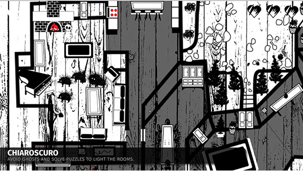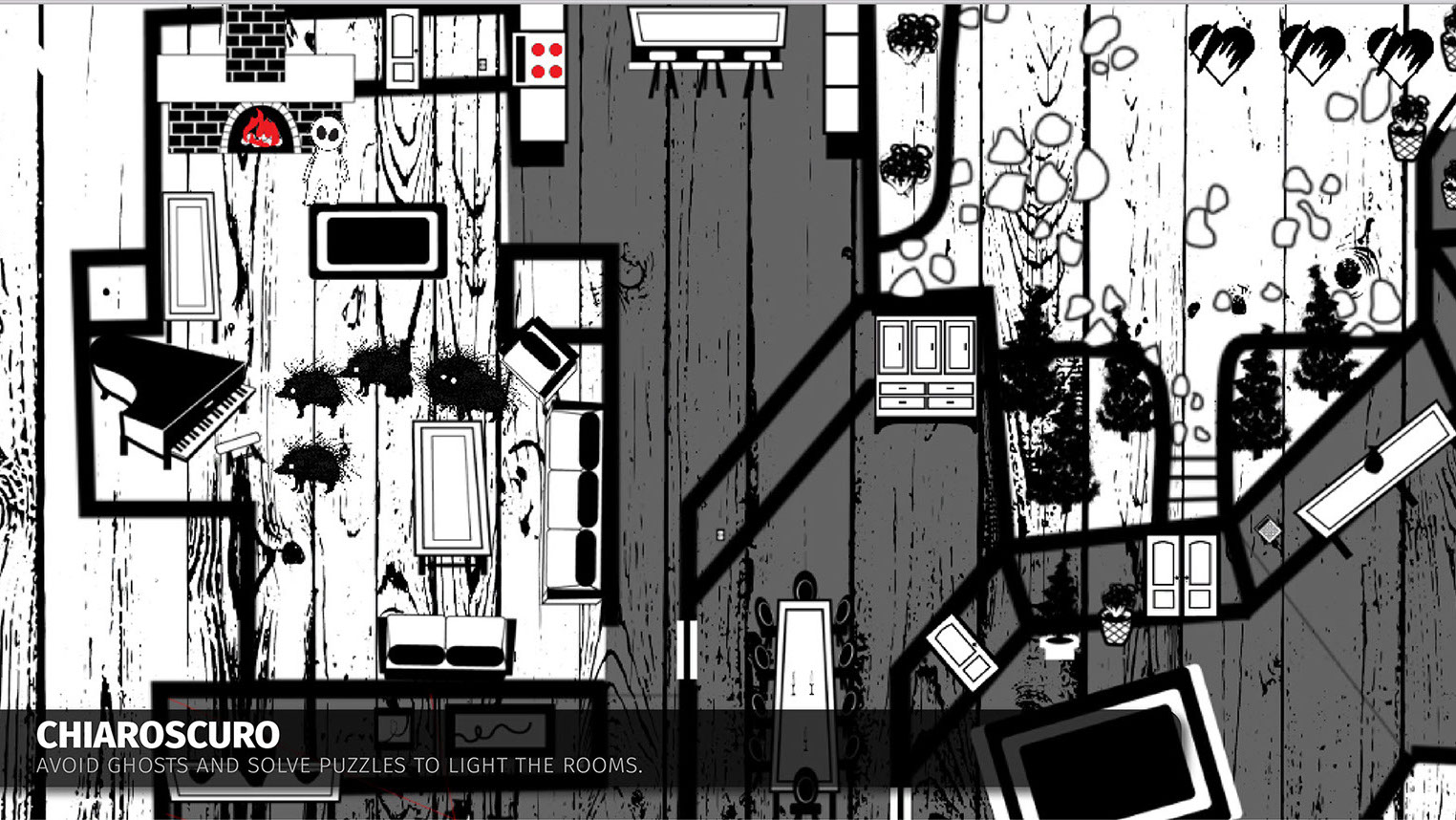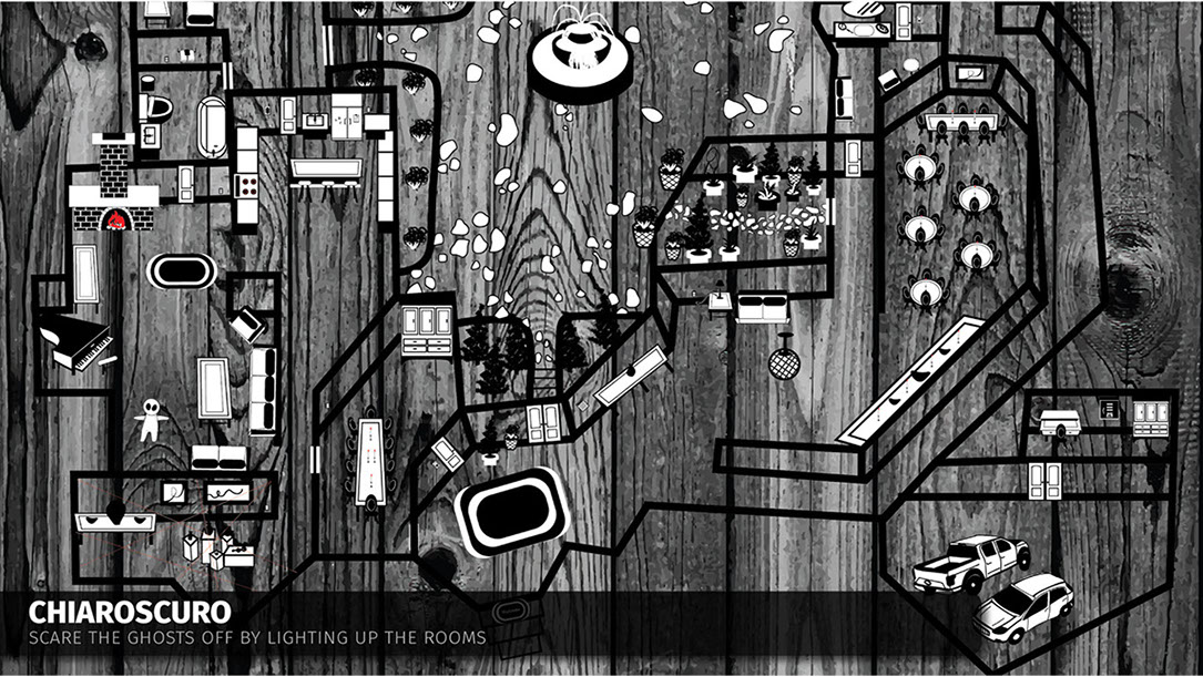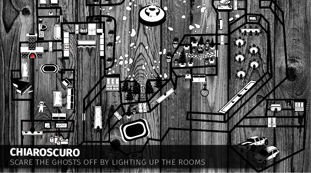You are locked in a mansion with spirits that hide in the darkness. Your goal is to turn on all of the lights so that the spirits do not have any place to hide. Each room will have a different set of tasks that will have to be completed in a specific order to accomplish the end goal of light. For example, if a room has a fireplace you will have to chop wood and place it in the fireplace, then find a source to light the fire.