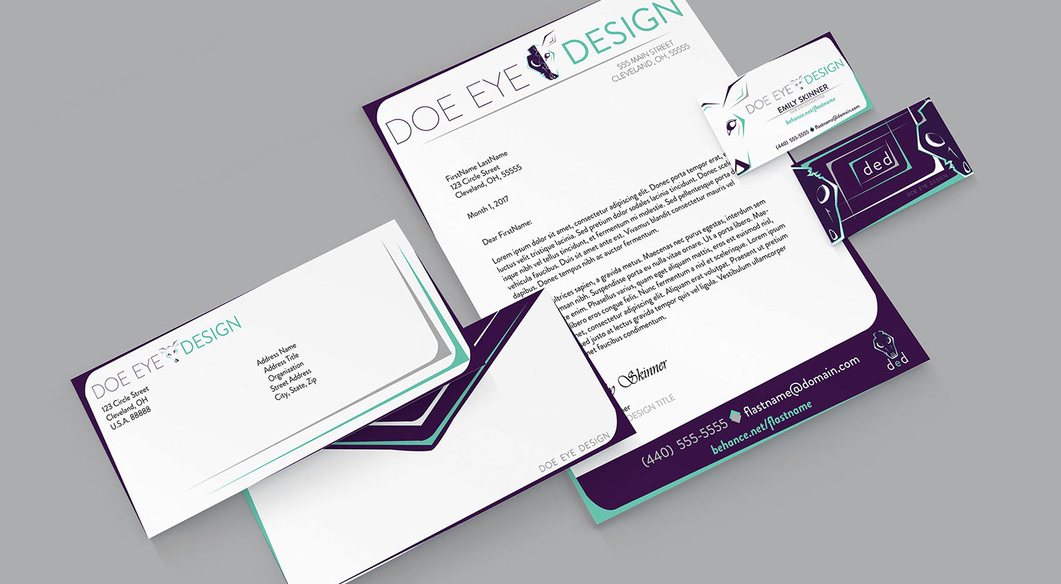 The brand name "Doe Eye Design" is supposed to have a free, innocent first impression. The brand name initials are D.E.D. which sound like "dead". This was the next concept that I ran with. I wanted this deeper meaning to show in the logo mark. I wanted to show that first impressions are not always what they seem. So my next concept on the logo mark was to create a deer skull to accentuate the DED in my brand name.