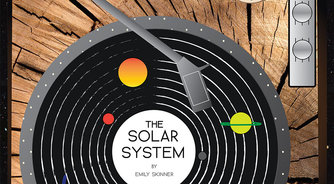 The designs were inspired by how sound is heard. Sound cannot travel in the vacuum of space. It is when we are within our planet's atmosphere that allows sound vibrations to be heard. I decided that giving each planet life would be like giving it a music. So I made each planet into an old style record. The geometric styles of these records can be seen within each page.